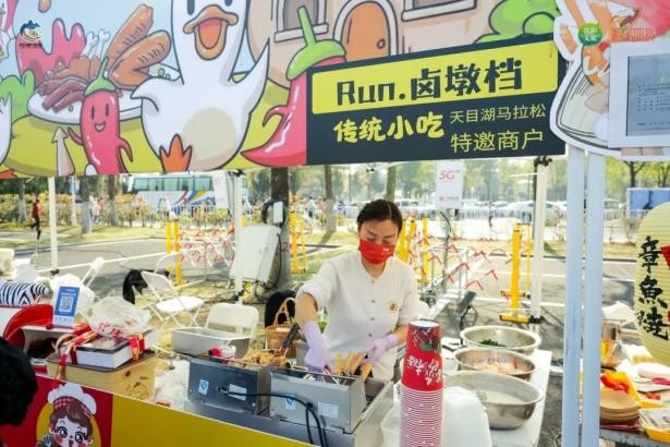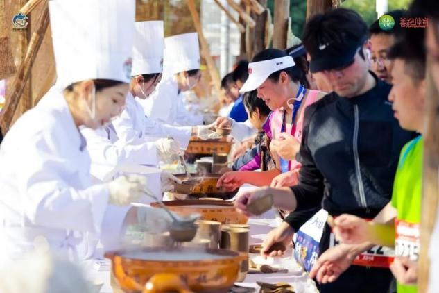 除赛道17个补给站外,赛事终点设溧阳非遗美食市集,包含竹箦风鹅、上黄羊糕、乌饭香肠等“十二道溧阳风味”。完赛选手更可畅享天目湖砂锅鱼头这一招牌美味,在补充能量的同时,沉浸式感受地方非遗饮食文化的独特魅力。