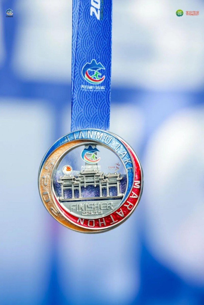 完赛奖牌深度融合天目湖牌楼与1号公路两大核心元素,创新采用动态流沙工艺。奖牌正面的天目湖牌楼设计为可立起机关,兼具观赏性与互动性,还支持个性化铭刻选手姓名,让每一块奖牌都成为独一无二的荣耀见证。