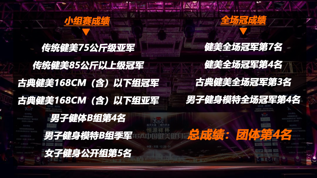 作为2020年收官之战,中国健美健体事业的年终狂欢盛典。本次大赛云集了中国健美健体届的精英大咖,众星闪耀。