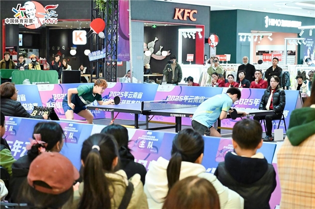 本次总决赛创新采用“双赛场双场景”模式:12月20日,小组赛、半决赛在昆明经开春天文体中心激烈展开,专业场馆为选手提供竞技舞台;12月21日,冠亚决赛移师瑞鼎城购物公园,将乒乓激情融入都市商圈,吸引市民驻足观赛,实现“体育+商业”的场景破圈。