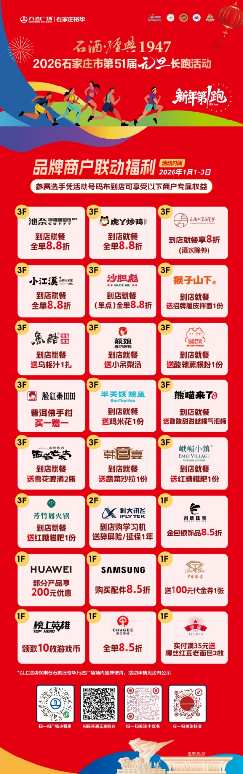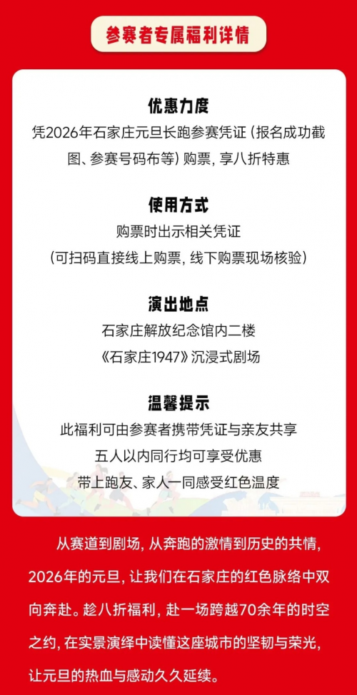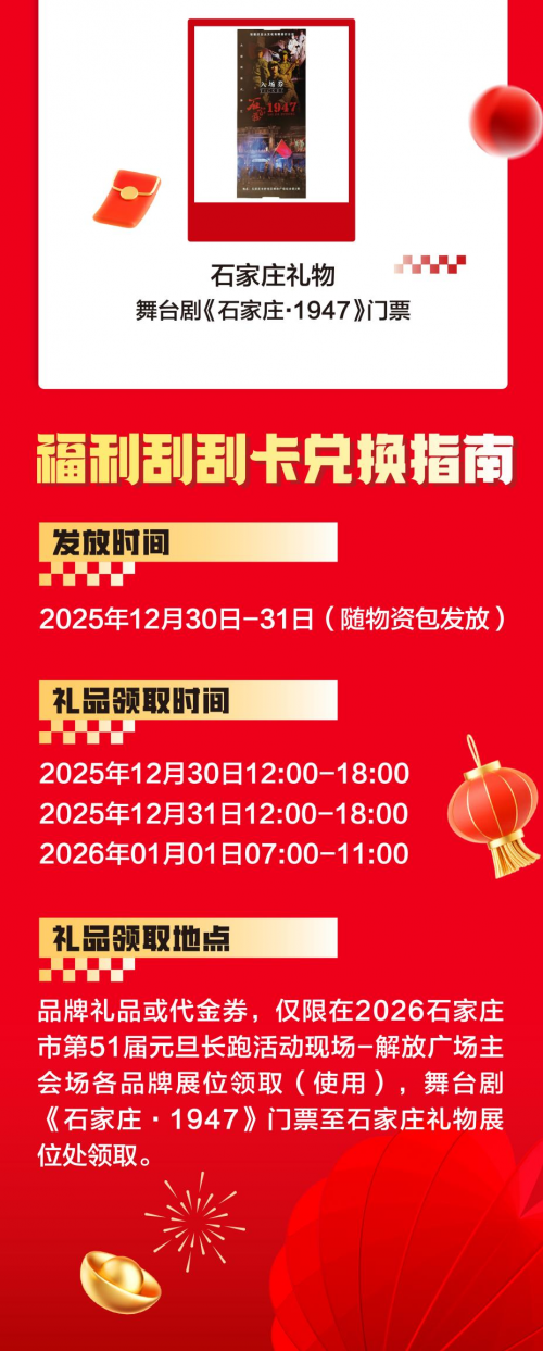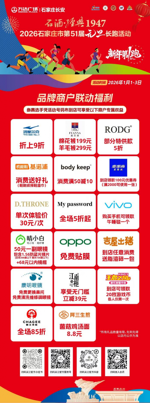 2026年1月1日07:30,石酒经典19472026石家庄市第51届元旦长跑活动,将在石家庄市解放广场盛大起跑! 活动装备领取将于12月30日-31日在解放广场正式开启,届时携带报名时所用的有效证件...